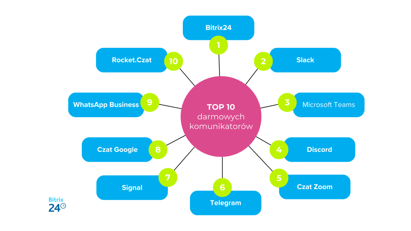 Dla kogo: idealna baza użytkowników różni się znacznie w przypadku tych czatów. Bitrix24 idealnie nadaje się dla zespołów poszukujących wszechstronnej platformy, która obsługuje nie tylko komunikację błyskawiczną, ale także zarządzanie projektami, CRM i nie tylko. Szeroki zestaw funkcji jest szczególnie korzystny dla średnich i dużych zespołów, które wymagają szeregu narzędzi do skutecznego zarządzania przepływem pracy i interakcjami z klientami. Slack i Microsoft Teams są najlepsze dla zespołów wymagających rozległej integracji aplikacji i tych, które są już osadzone w swoich ekosystemach. Nieformalna konfiguracja Discorda i skupienie się na rozmowach odpowiada społeczności graczy i nieformalnym zespołom, podczas gdy Zoom Chat jest optymalny dla zespołów często korzystających z Zoomu podczas spotkań. Telegram i Signal obsługują zespoły kładące nacisk na prywatność i bezpieczeństwo, a Telegram zapewnia większą elastyczność dzięki botom. Google Chat jest idealny dla zespołów korzystających z Google Workspace, natomiast Rocket.Chat jest przeznaczony dla zespołów potrzebujących pełnej kontroli danych i dostosowywania. WhatsApp Business ma wyjątkową pozycję dla małych firm skupiających się na zaangażowaniu klientów.