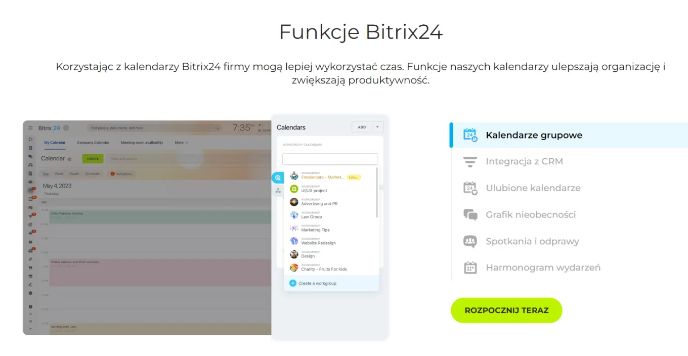 Podsumowując, kalendarz to podstawowe, ale niezwykle przydatne narzędzie do organizacji czasu. Jego prostota i łatwość użycia sprawiają, że jest idealny dla osób, które dopiero zaczynają swoją przygodę z planowaniem. Jeśli jednak potrzebujesz bardziej zaawansowanych funkcji, takich jak szczegółowe planowanie zadań, śledzenie celów, czy zarządzanie relacjami z klientami, warto rozważyć kompleksowe rozwiązanie, takie jak system CRM Bitrix24. To narzędzie łączy w sobie funkcje kalendarza, planera i organizera, a dodatkowo oferuje wiele innych możliwości, które pomogą Ci usprawnić pracę i osiągnąć sukces.