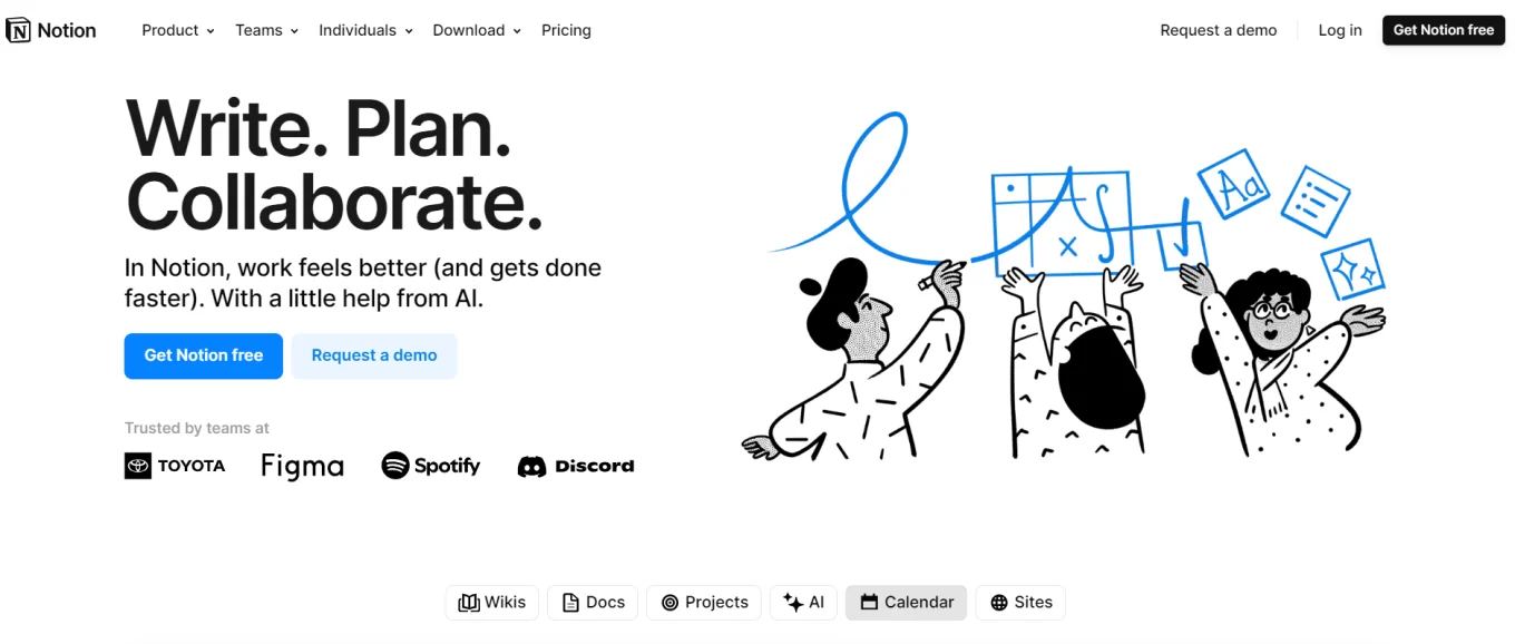 Notion jest wszechstronną platformą łącząca w sobie funkcje notatnika, bazy danych, wiki i narzędzia do zarządzania projektami. Będzie idealnym wyborem dla osób, które potrzebują zebrać swoje plany w jednym miejscu.