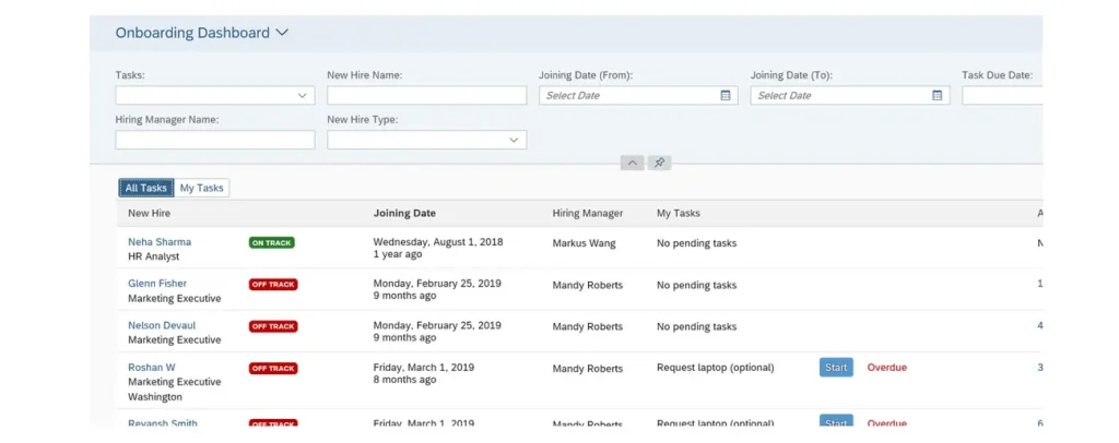 Odkryj możliwości Bitrix24.Workday Human Capital Management (HCM) to jedna z wiodących na rynku, kompleksowych platform HR dla dużych przedsiębiorstw. Onboarding jest tutaj zaawansowanym modułem, zaprojektowanym do zarządzania całym procesem wdrożenia, od momentu podpisania oferty pracy aż po osiągnięcie pełnej produktywności przez pracownika. Workday kładzie nacisk na płynne doświadczenie użytkownika i automatyzację zadań administracyjnych.
