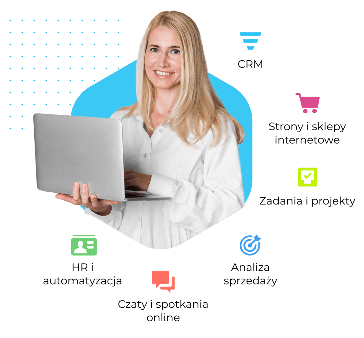 Bitrix24 zawiera wszystkie narzędzia potrzebne do zarządzania sprzedażą, klientami, zadaniami i pracownikami. Chociaż każde z naszych narzędzi jest samowystarczalne, są one najbardziej skuteczne, gdy są używane razem w Bitrix24. Obejrzyj nasze demo i zobacz, co Bitrix24 może zrobić dla Twojej firmy.