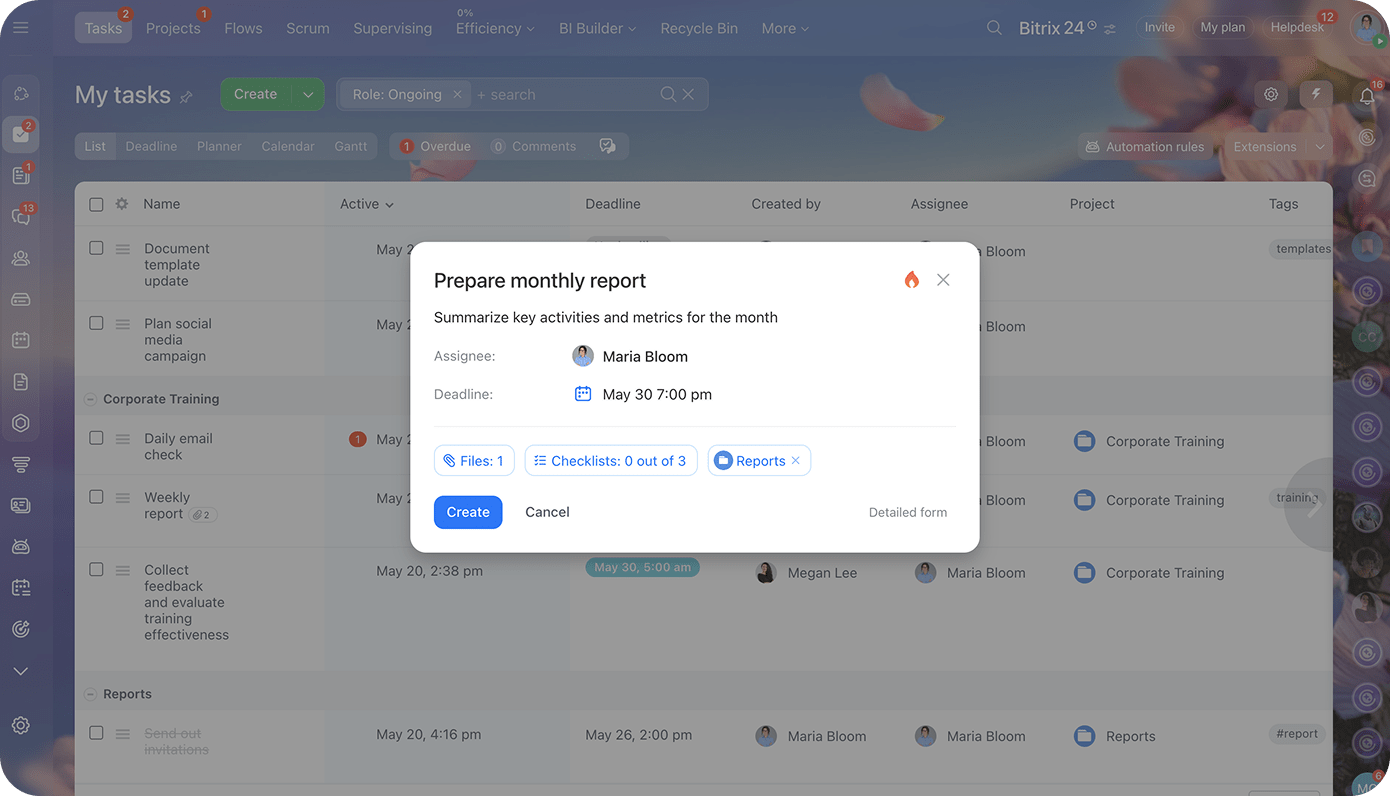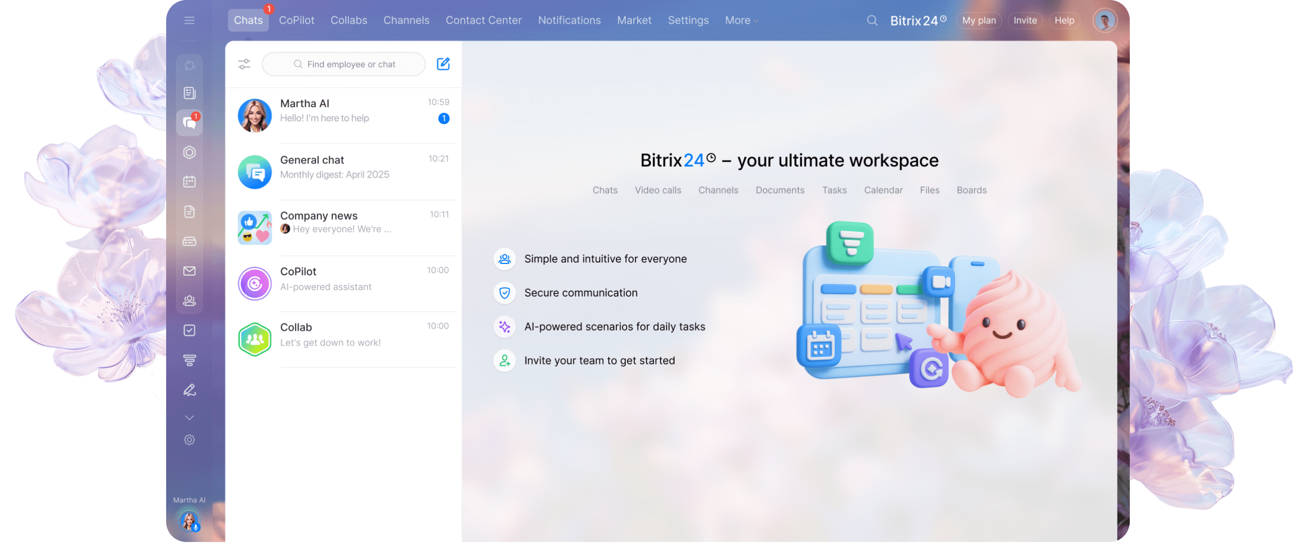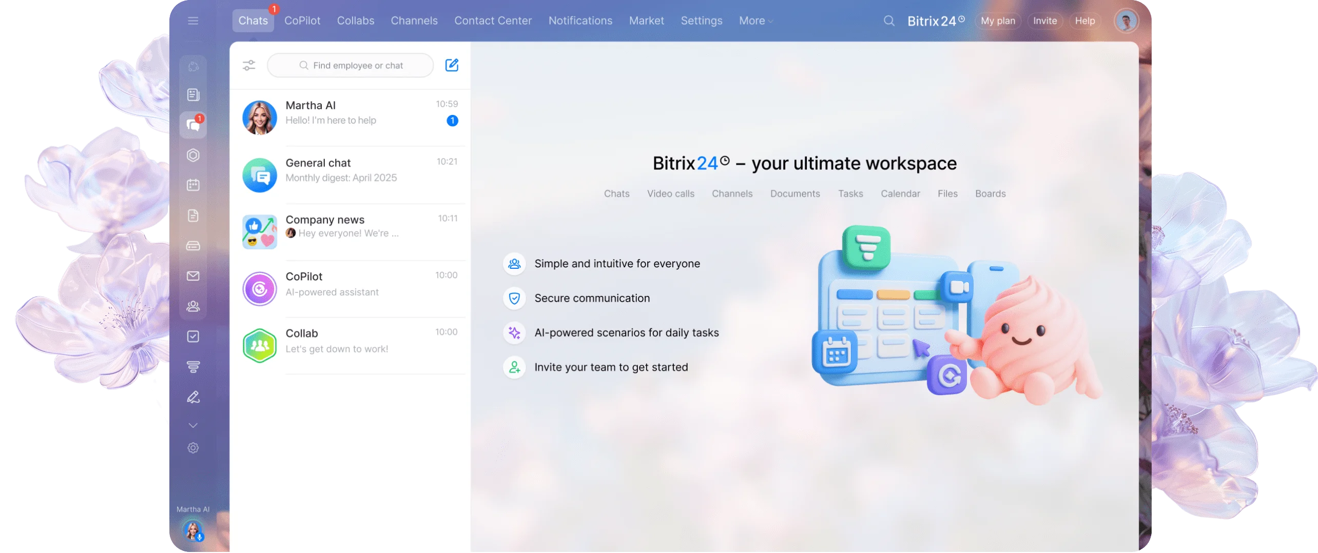 Martha to Twój nowy sposób na realizację zadań. Od onboardingu po codzienne planowanie – ta asystentka wspierana przez AI odciąży Cię od obowiązków i pozwoli Tobie (i Twoim współpracownikom) poruszać się po Bitrix24 z łatwością.