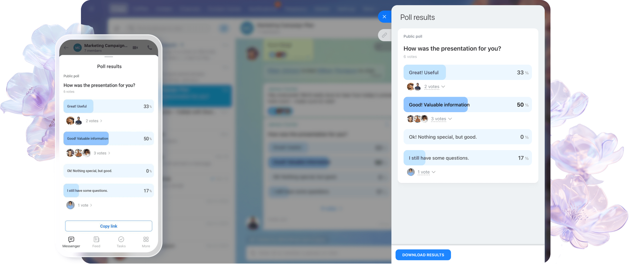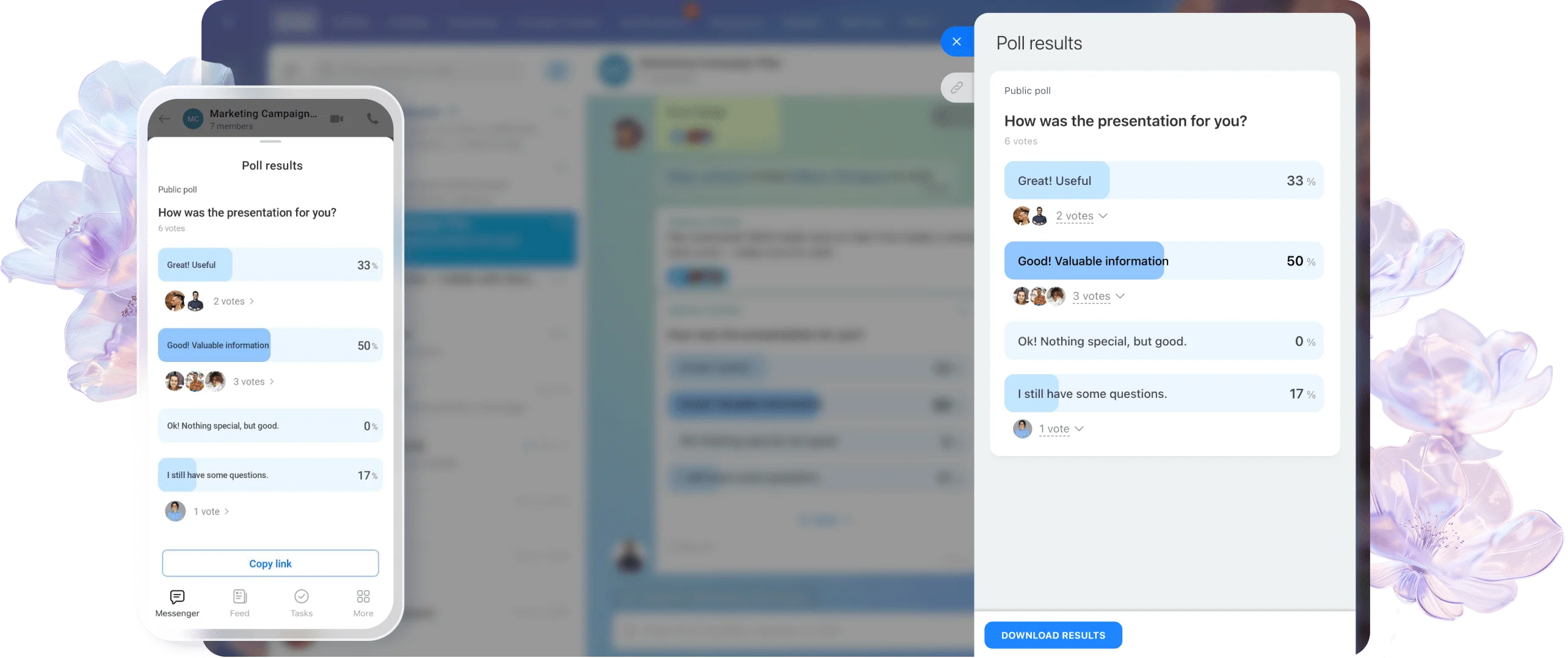 Potrzebujesz poznać opinię zespołu? Zamiast długiej dyskusji teraz możesz łatwo stworzyć i uruchomić ankietę, zebrać wyniki, a nawet wyeksportować je do arkusza Excel.
