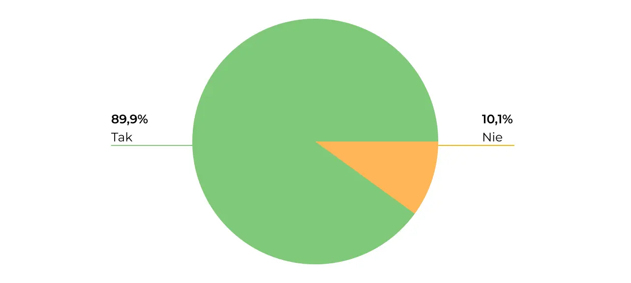 89,9% ankietowanych poleca platformę innym. Tak wysoki poziom rekomendacji świadczy o tym, że użytkownicy nie tylko uznają Bitrix24 za przydatne narzędzie, ale również dostrzegają realną wartość, jaką wnosi do codziennego funkcjonowania firmy.