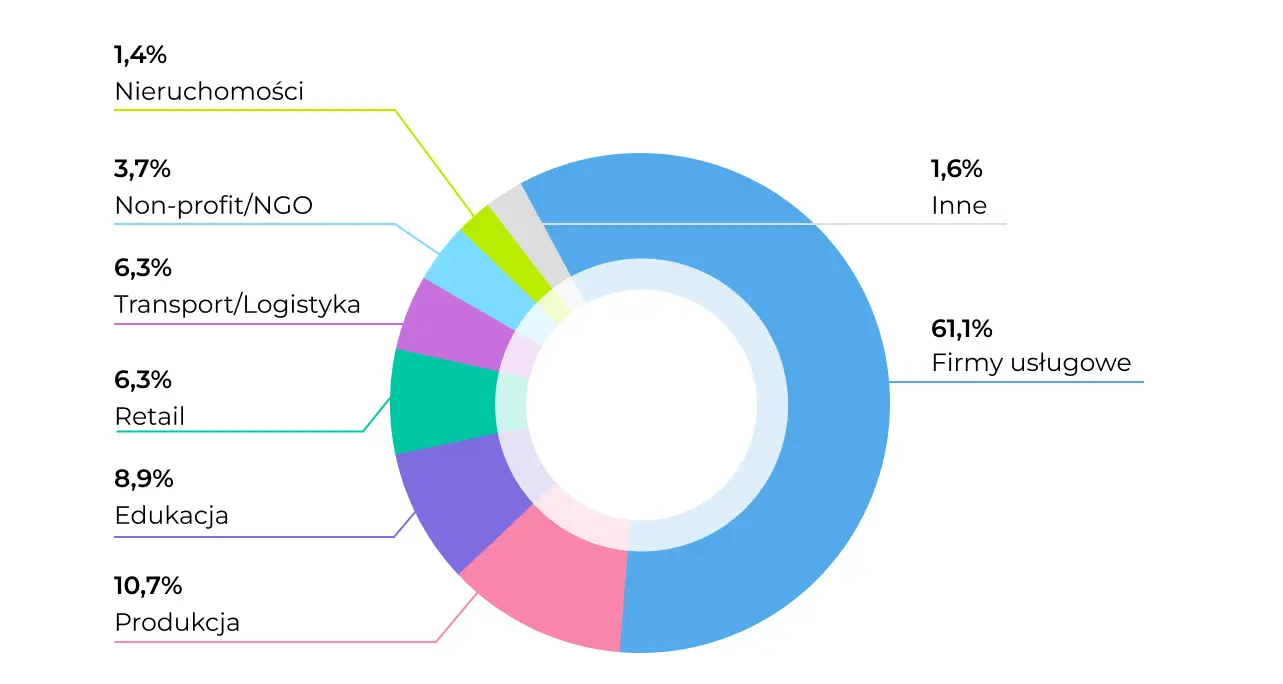 Organizacje non-profit (3,7%) i Nieruchomości (1,4%), co demonstruje zdolność platformy do dostosowywania się do specyficznych potrzeb.
