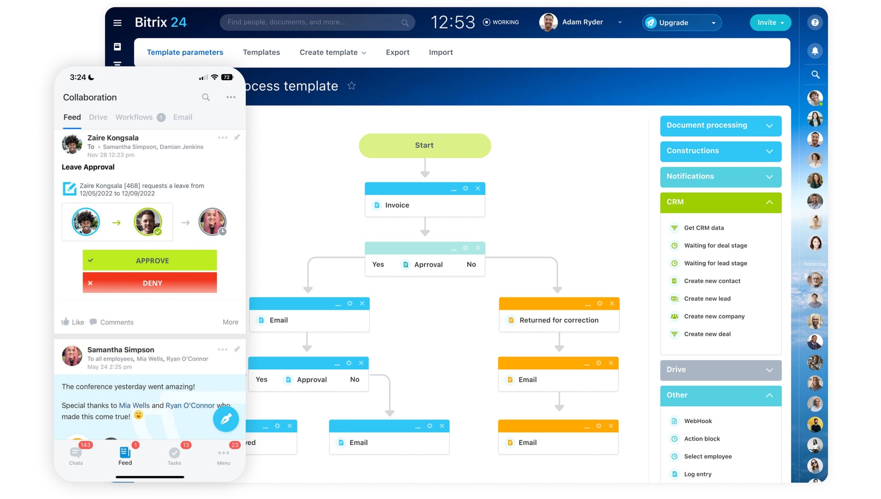 Zabierz oprogramowanie CRM w podróż dzięki aplikacji mobilnej Bitrix24. Teraz można komunikować się z klientami lub zarządzać lejkami z dowolnego miejsca na świecie.
