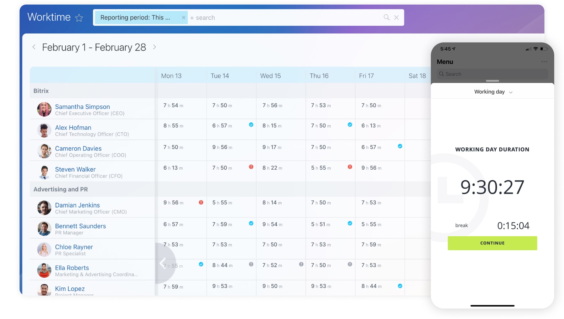 Wesprzyj zespół HR za pomocą przydatnych narzędzi do zarządzania klientami. Śledź grafiki, planuj urlopy, twórz raporty i zbieraj dane do analizy. Dostępne są również wewnątrzbiurowe sieci społecznościowe.