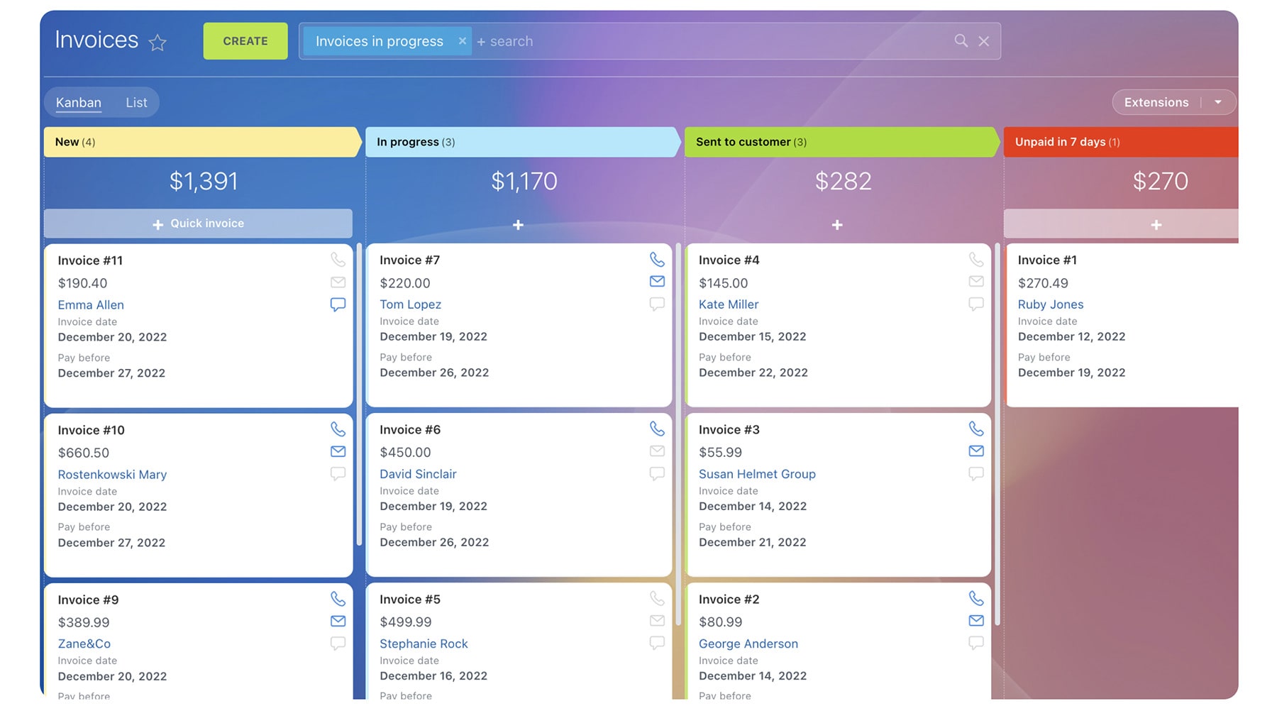 W Bitrix24 można nie tylko przechowywać faktury, ale również je tworzyć. Teraz fakturowanie jest łatwiejsze niż kiedykolwiek, zwłaszcza przy jednoosobowej działalności.