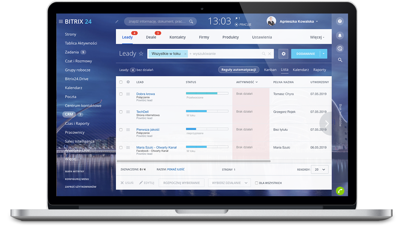 Możesz korzystać z Bitrix24 w dowolnej przeglądarce, w aplikacji desktopowej (dla Windows, Mac, Linux) lub w aplikacji mobilnej (dla iOS lub Android).