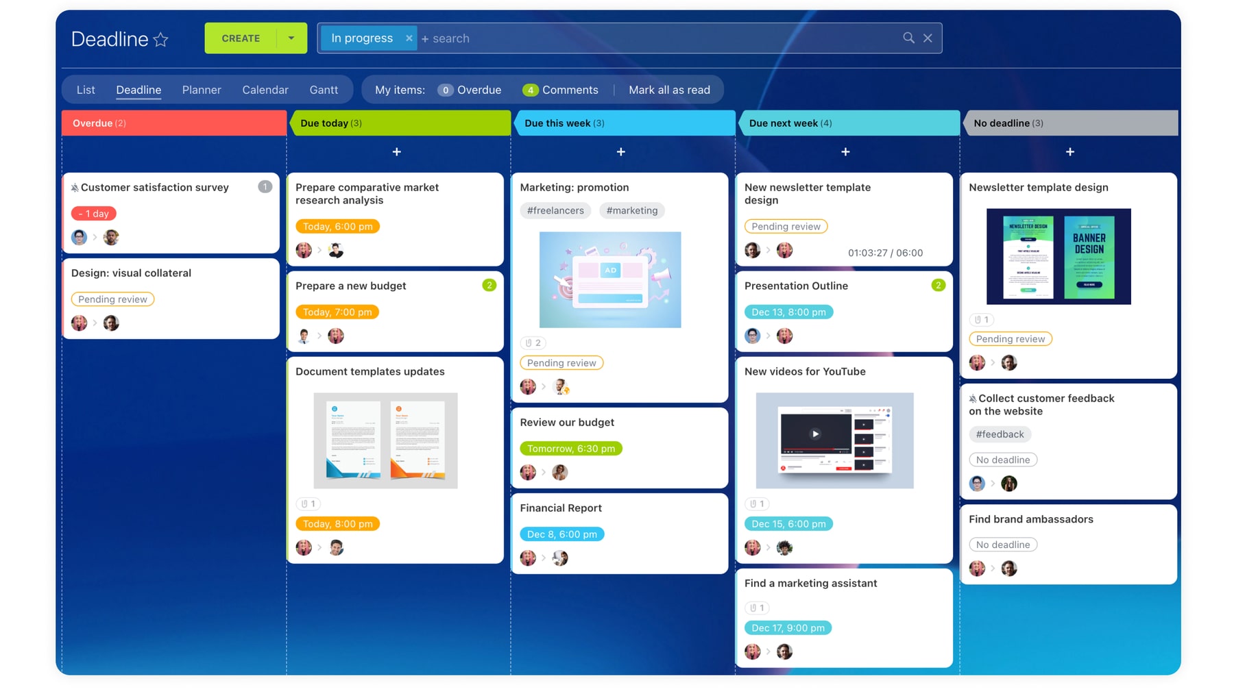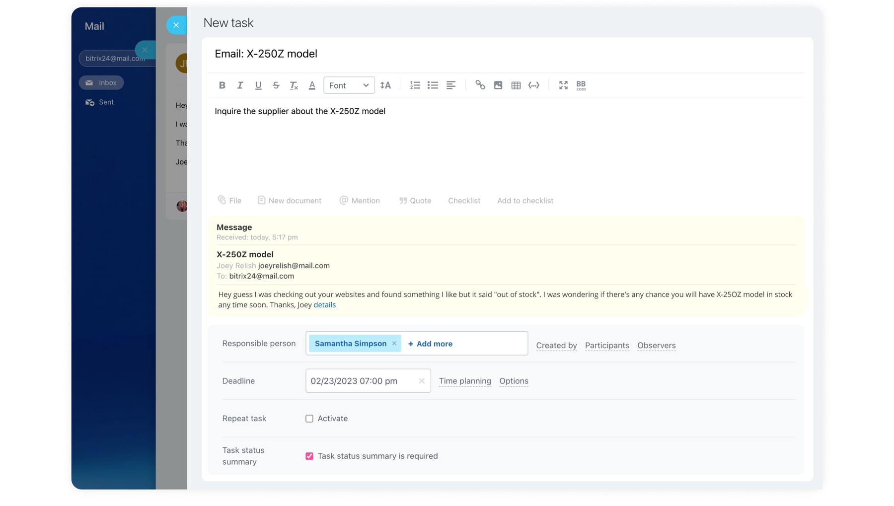 Tworzenie zadań po rozmowie stało się jeszcze łatwiejsze. Wysyłając wiadomości e-mail do klienta lub przeglądając e-maile od członków zespołu, łatwo zapomnieć o skonfigurowaniu zadania. Zamiast ustawiać przypomnienie na później, użyj narzędzia do zarządzania projektami i utwórz zadanie bezpośrednio z wiadomości e-mail. Zwiększ produktywność, oszczędzając czas i pomijając etapy między tworzeniem wiadomości e-mail a tworzeniem zadań, jednocześnie poprawiając zarządzanie klientami.