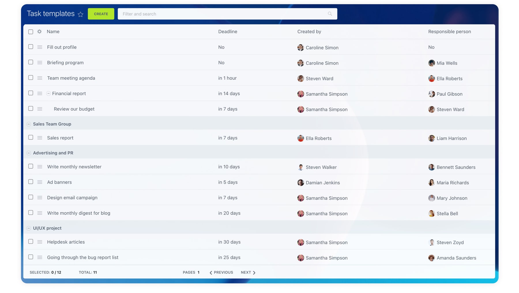 Do różnych zadań kierownicy projektów mogą korzystać z gotowych szablonów na platformie. Istnieje również możliwość tworzenia niestandardowych szablonów. Możliwość skorzystania z dowolnej opcji oznacza, że każdy zespół może pracować na platformie w optymalny sposób.