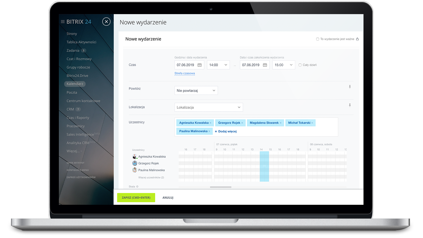 Możesz korzystać z Bitrix24 w dowolnej przeglądarce, w aplikacji desktopowej (dla Windows, Mac, Linux) lub w aplikacji mobilnej (dla iOS lub Android).