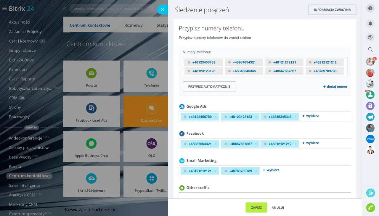 Niezależnie od tego, czy komunikujesz się z klientami, uruchamiasz kampanie marketingowe lub szukasz nowych leadów, zawsze dobrze jest mieć do wyboru kilka opcji. Właśnie to zapewnia oprogramowanie CRM Bitrix24 do obsługi wielokanałowej.