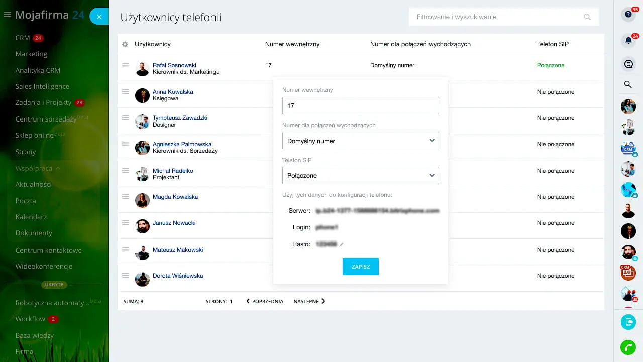 Rozmowy można nagrywać i dodawać do dealów w CRM. Połączenia przychodzące są przekazywane do przedstawiciela handlowego odpowiedzialnego za dany lead.