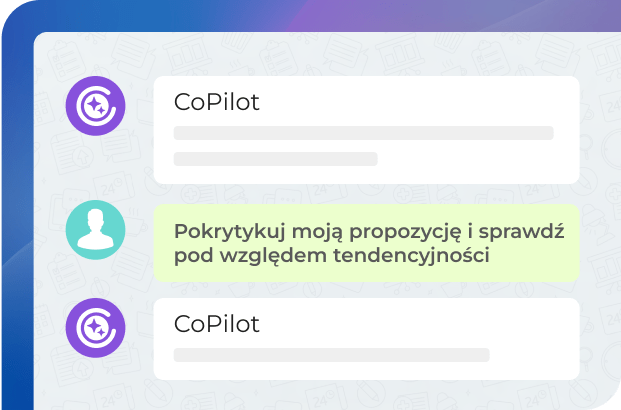 Wystarczy wpisać temat i ton (np. formalny, angażujący, informacyjny itp.), a CoPilot zajmie się resztą. Możesz również poprosić naszą AI o przepisanie tekstu z innej perspektywy lub w innym tonie.
