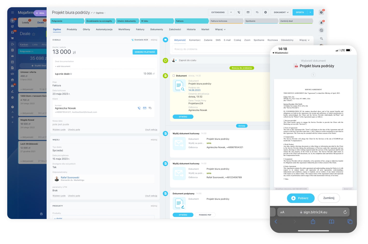 CRM Bitrix24 ma wszystko, czego potrzebujesz, aby zdobywać leady, przekształcać je w deale, otrzymywać płatności, zarządzać asortymentem, podpisywać elektronicznie dokumenty, prowadzić kampanie marketingowe, zwiększać zaangażowanie klientów i ich retencję, monitorować wskaźniki związane ze sprzedażą i nie tylko.