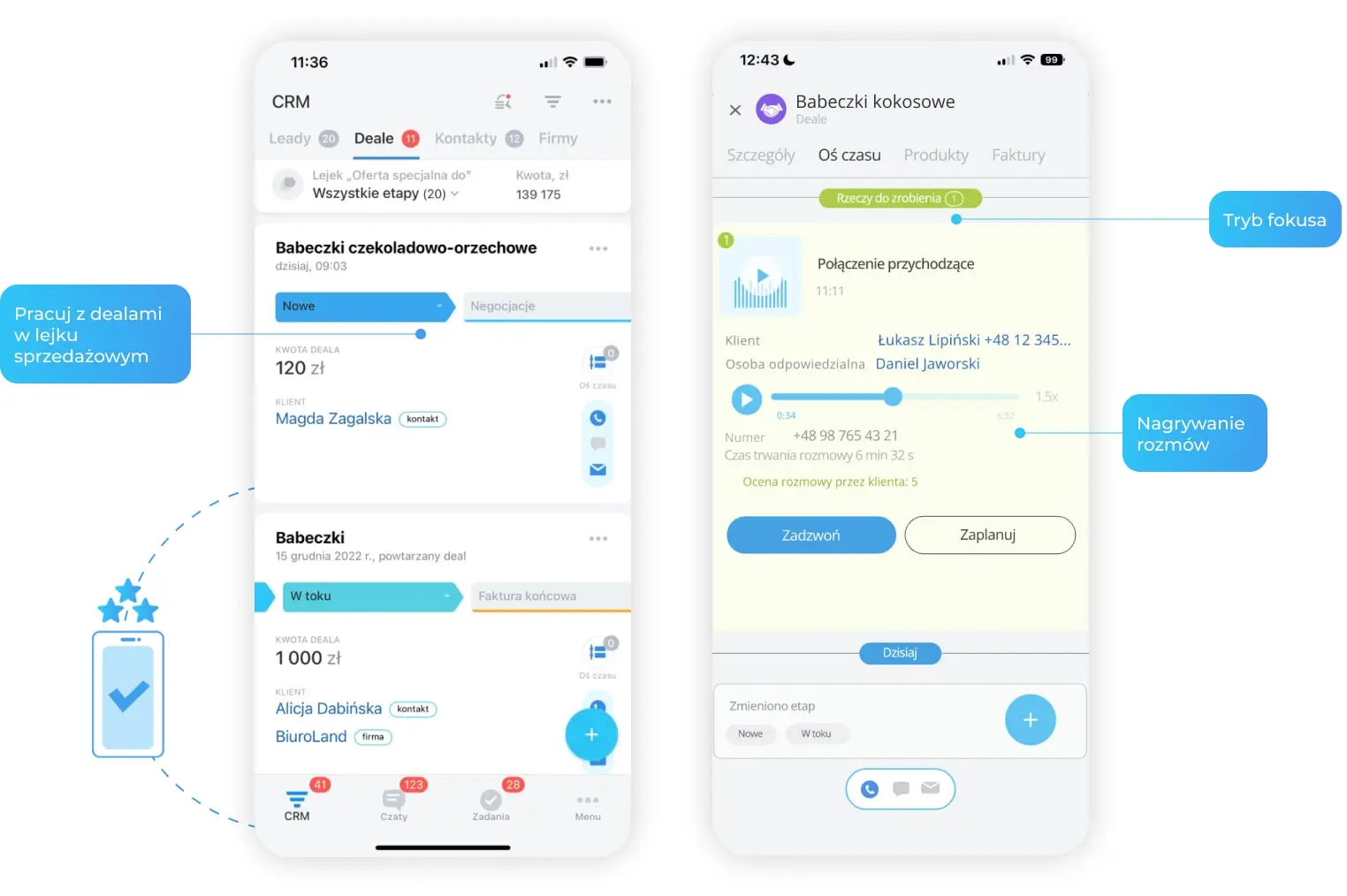 Zarządzaj sprzedażą, klientami i pracą zespołu ze swojego smartfona za pomocą aplikacji mobilnej Bitrix24.