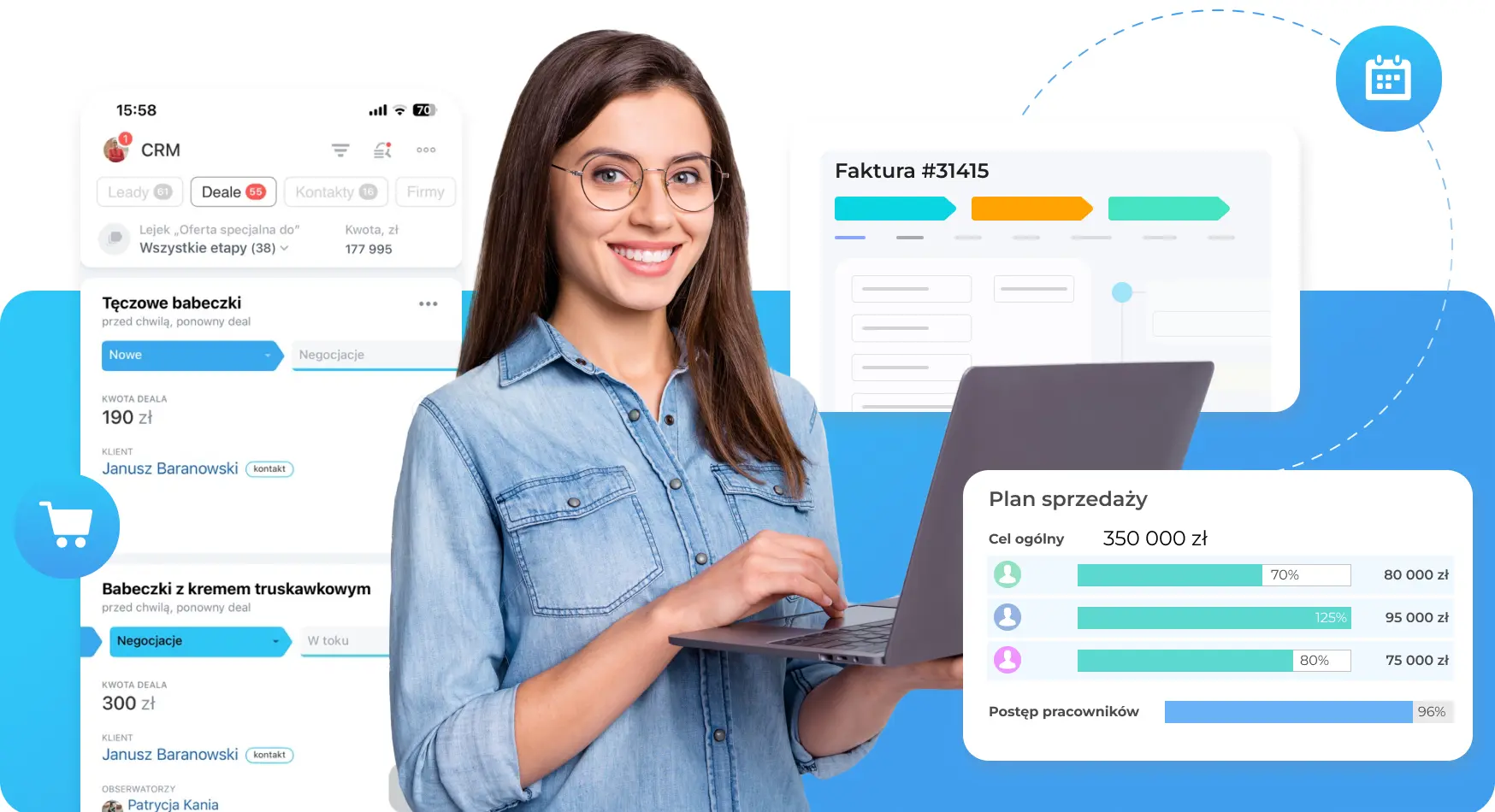 Wszystko, czego potrzebujesz, aby wspierać dział sprzedaży: oferty, faktury, płatności, katalog produktów, zarządzanie asortymentem, e-Podpis i jeszcze więcej.