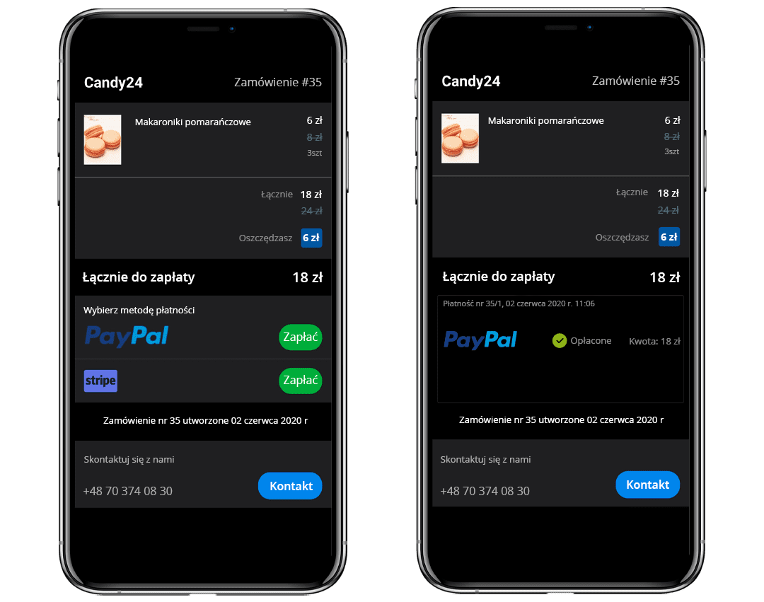 Po zrealizowaniu zapłaty, klient otrzyma potwierdzenie na swój smartfon.