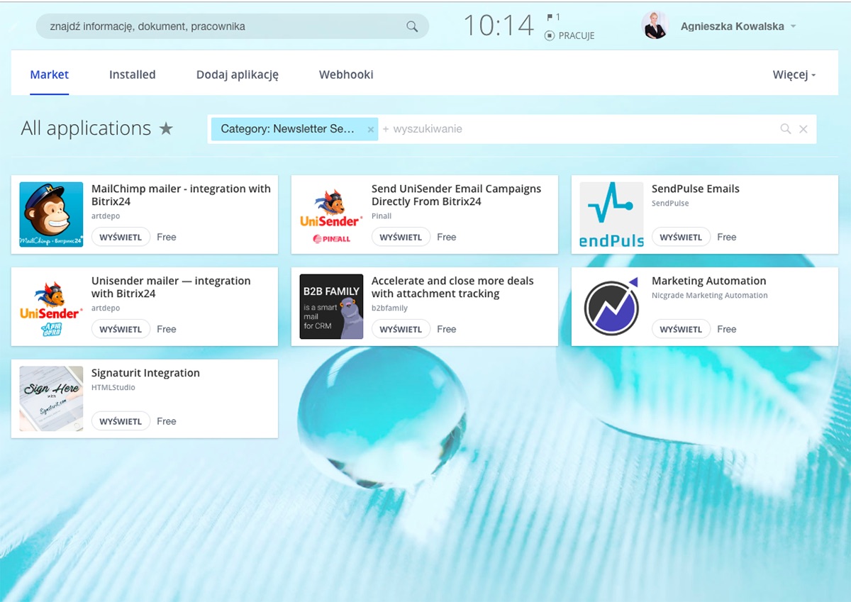 Bitrix24 oferuje kilkadziesiąt integracji dostępnych w Bitrix24 Market. Możesz także tworzyć własne aplikacje za pomocą naszego REST API.