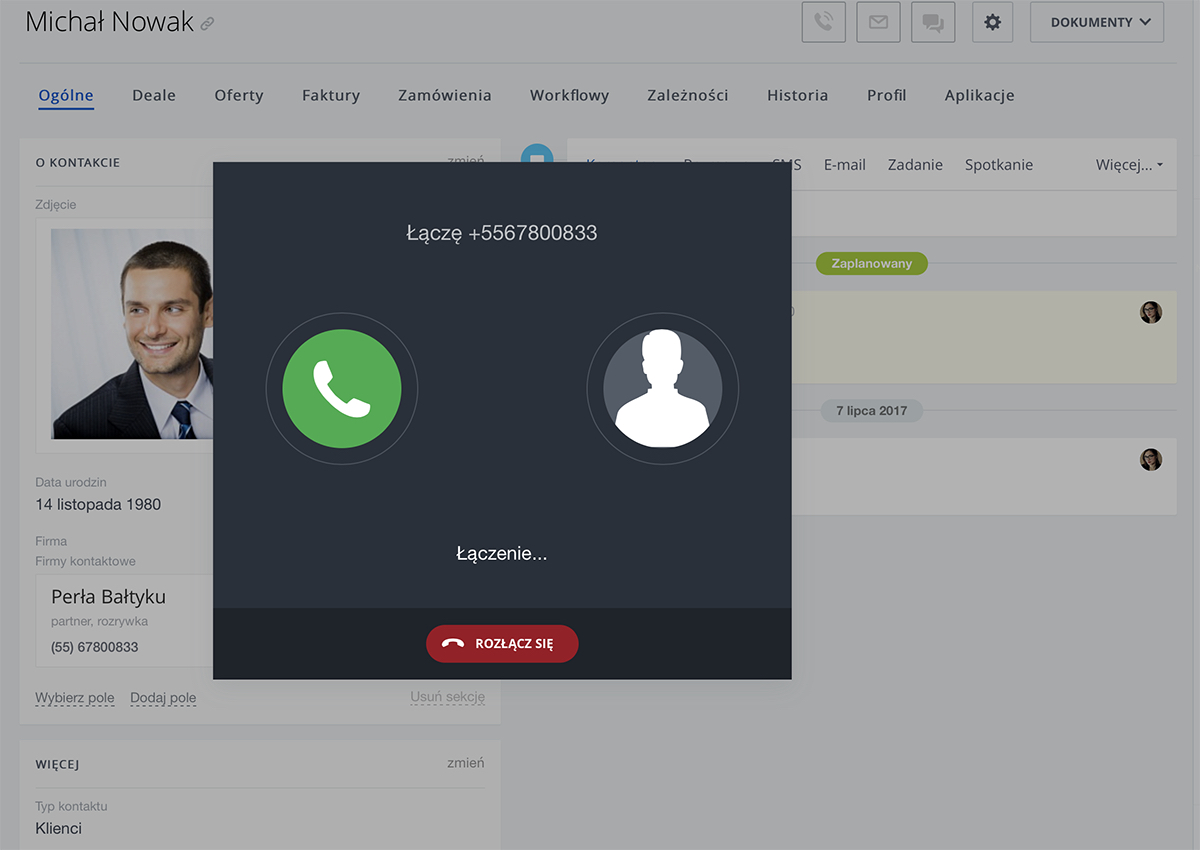 Rozmowy można nagrywać i dodawać do dealów w CRM. Połączenia przychodzące są przekazywane do przedstawiciela handlowego odpowiedzialnego za dany lead.