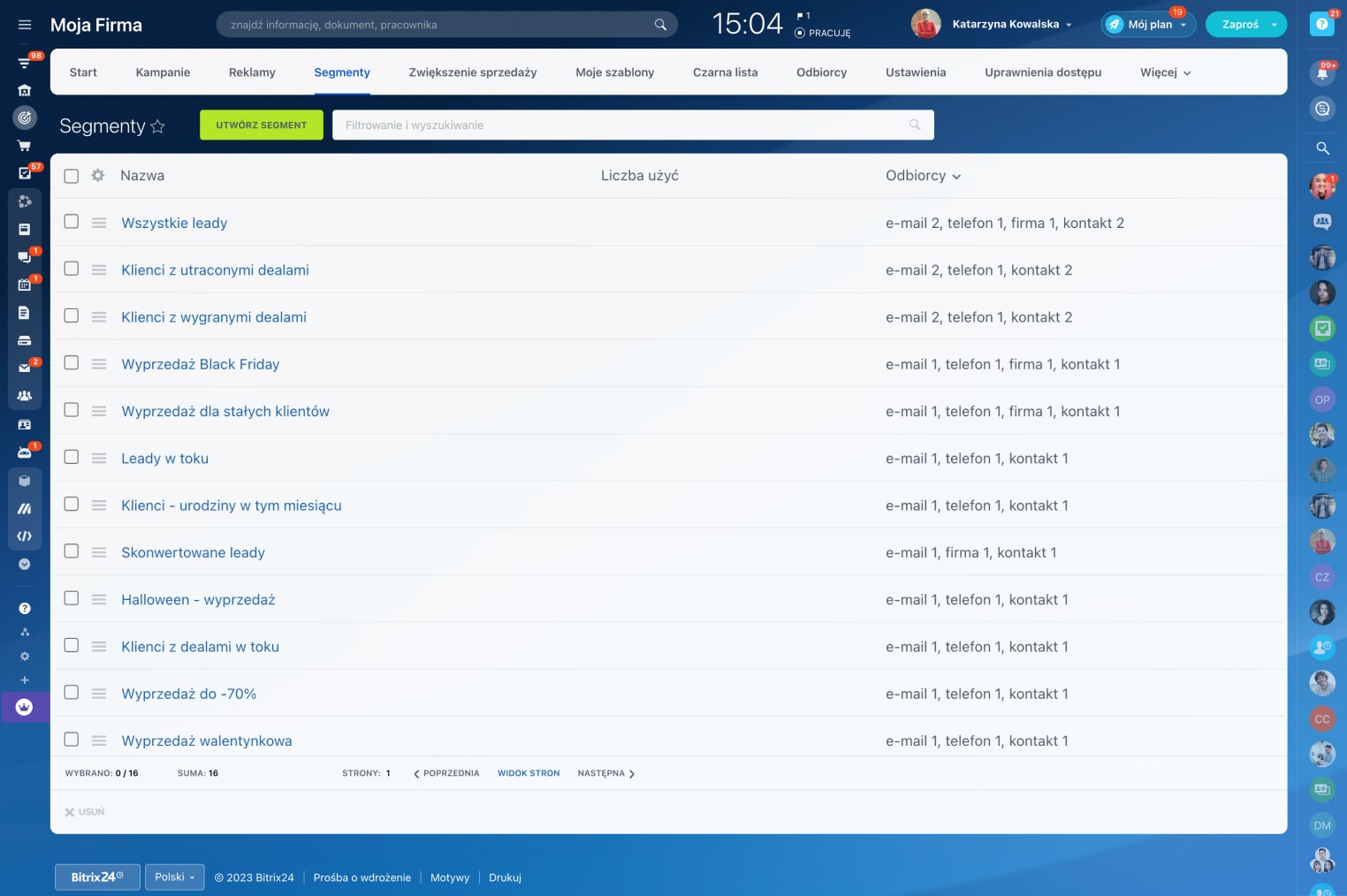 Po prosty wybierz odbiorców ze swojej platformy marketingowej CRM Bitrix24 (indywidualnie lub według segmentów), wpisz wiadomość i wyślij ją.