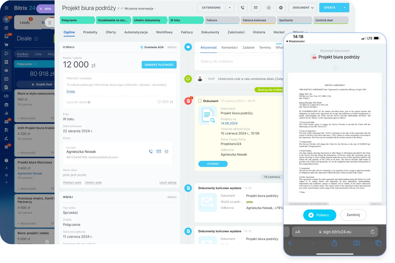 Bitrix24 oferuje wszystkie popularne narzędzia marketingowe wspierające sprzedaż – od ofert i faktur po e-Podpisy, płatności online i wiele więcej.