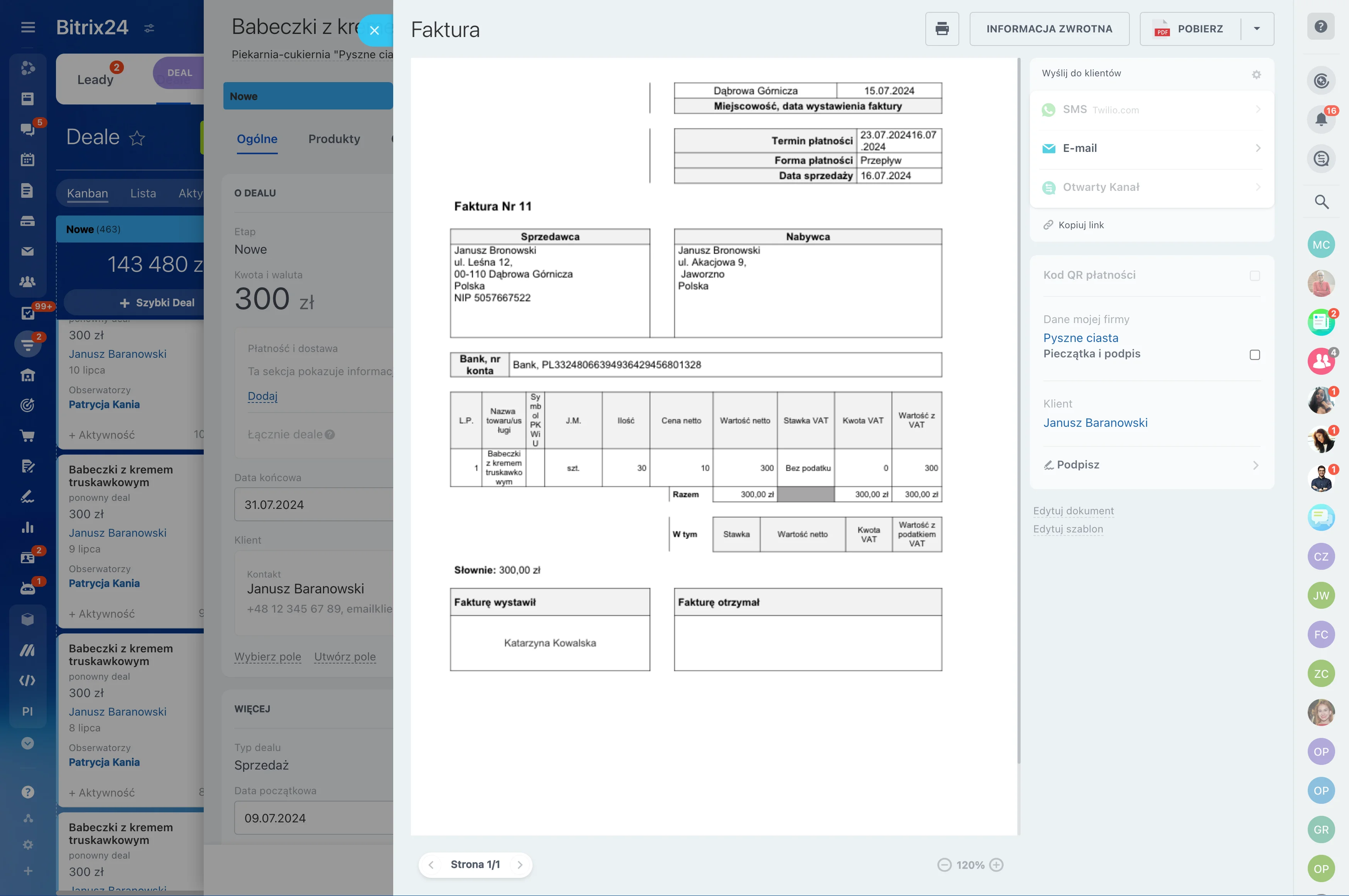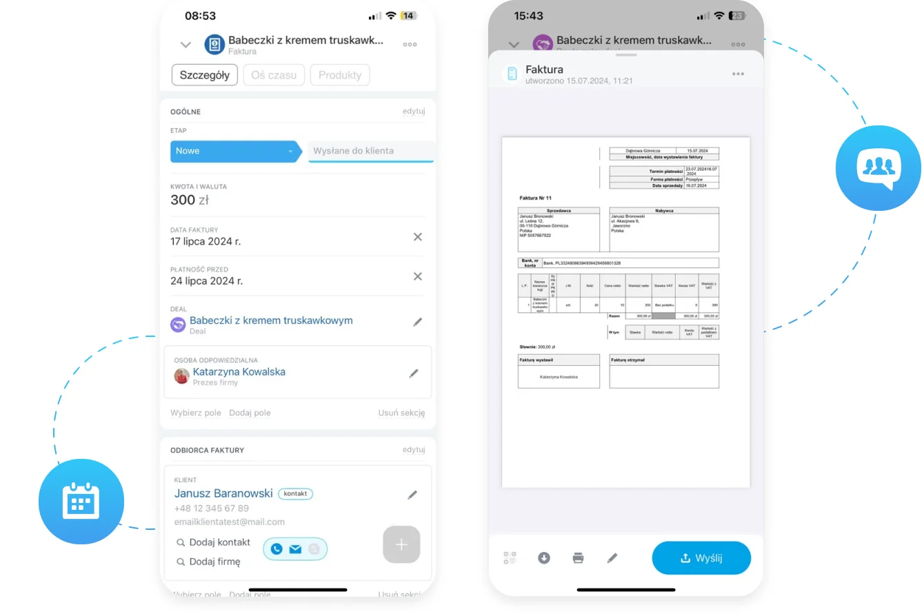 Każda faktura jest połączona z konkretnym dealem w CRM, co znacznie ułatwia śledzenie historii interakcji z klientami.