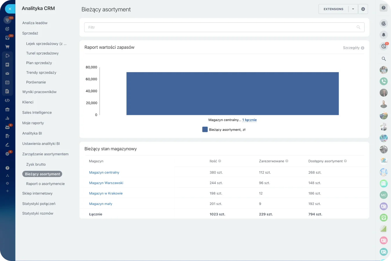 Dzięki Bitrix24 zawsze wiesz, ile produktów zostało sprzedanych i czy nadszedł czas na uzupełnienie zapasów. Po sprzedaniu produktu i sfinalizowaniu transakcji, nasze narzędzie do zarządzania asortymentem automatycznie aktualizuje stan zapasów.