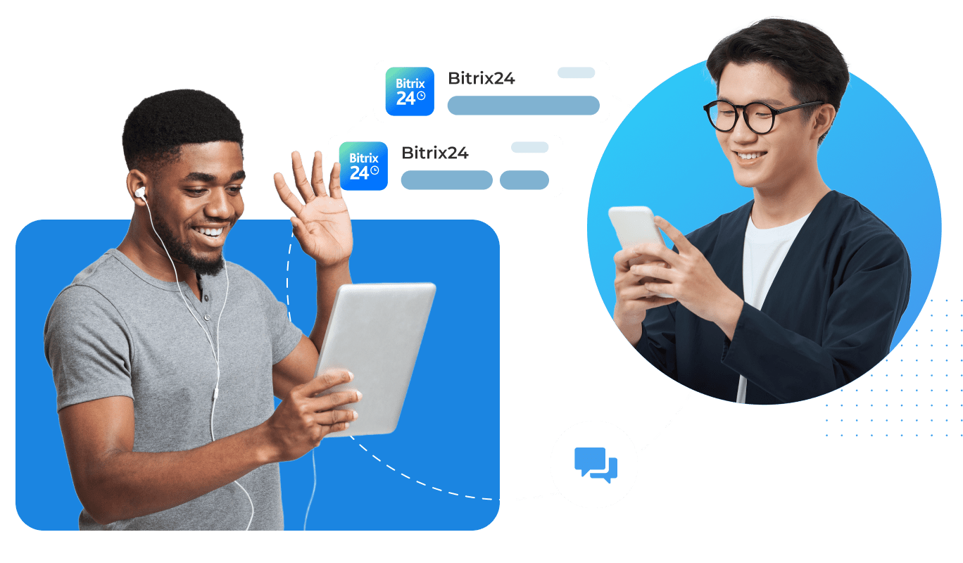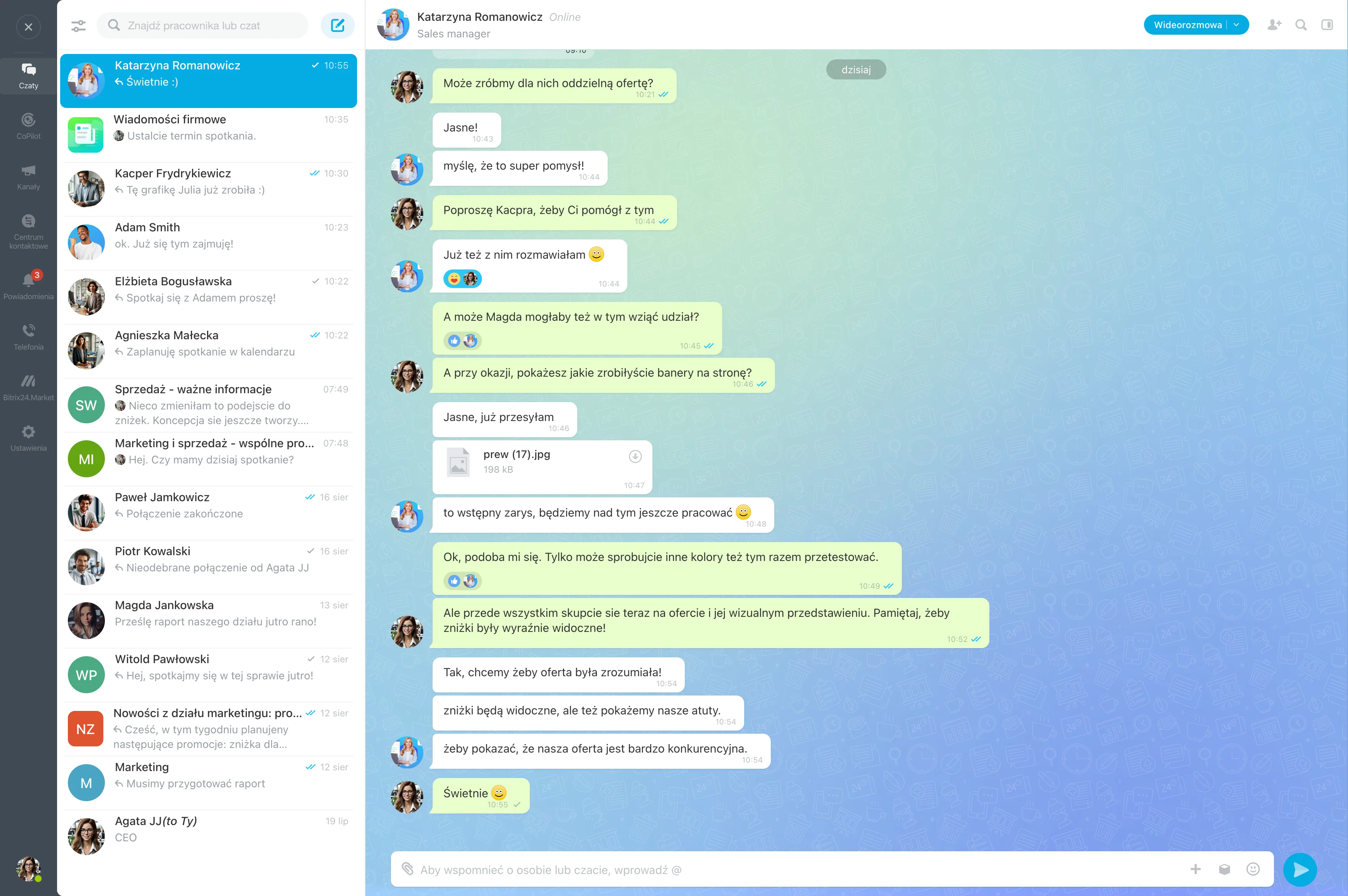 Komunikator Bitrix24 zapewnia szybką, produktywną i bezpieczną komunikację, która jest organicznie powiązana z resztą naszych narzędzi do współpracy i CRM.