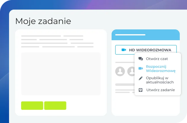 Nie musisz korzystać z zewnętrznych rozwiązań do wymiany wiadomości, udostępniania plików, organizowania wideorozmów, tworzenia zadań i śledzenia postępów pracy. Wszystkie działania projektowe pozostają na Twoim koncie.